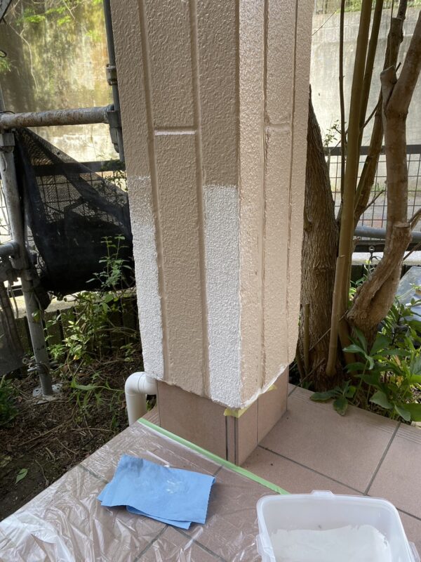 以前、わんちゃんがいたずらしたため、削れていた部分をパテで成形して塗装いたします。