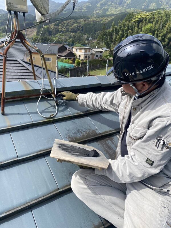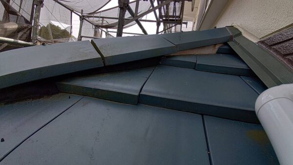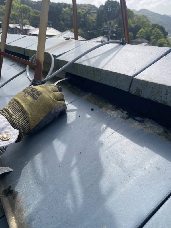 固定する力が弱まっており、棟瓦・桟瓦の数枚はズレが見られました。
