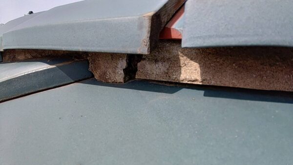 このような隙間には漆喰が詰められていますが、雨漏りを防ぐ役割があります。