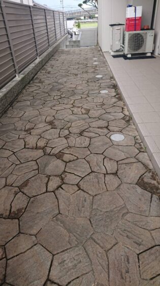 5年前に施工されましたが、材料が悪かったせいか隙間からコケが生えたり砂が出てきたりで、お困りでした。
