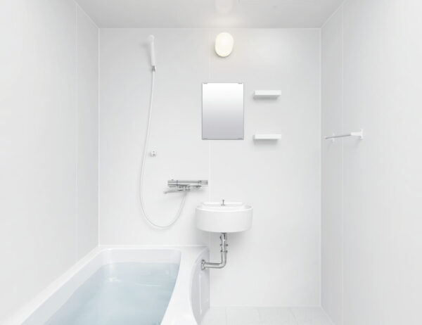 ユニットバス 工場で規格された天井、壁、床などを現場で組み立てる浴室のことで、工期が短縮可能。