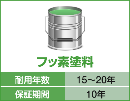 フッ素塗料の特徴は、15年~20年程度と他の塗料よりも高い耐候性・耐久性を持つことです。
